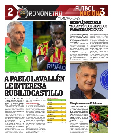 Colombia y estaría dispuesto a escu- un delantero más para tener una 8. Génesis Policía N. 2 0 3 contra Juticalpa FC, por la