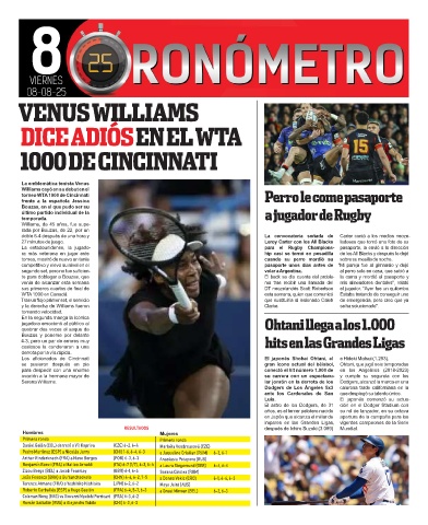 Serena Williams. lar jonrón en la derrota de los Dodgers, alcanzó la marca en una