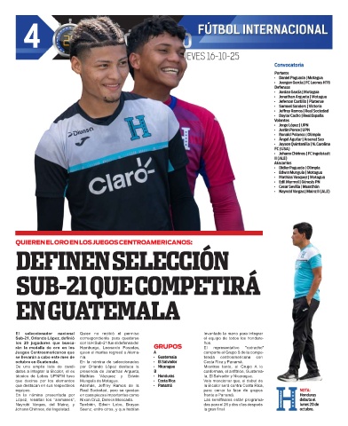 que destacan en sus respectivos Además, Jeffrey Ramos de la • Panamá la Bicolor será contra Costa Rica,