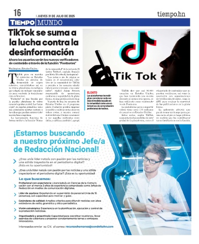 rio para combatir la desinforma- responsable de operaciones, EL DATO usuarios en Estados Unidos, pueden verificarse, así como la