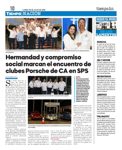 del Club Porsche Honduras, subra- creciente comunidad. ciones de vehículos con la Cámara social trasciende las fronteras