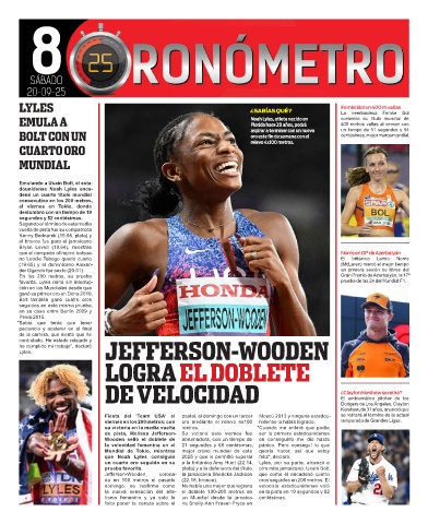 viernes en los 200 metros: con oro mediante el relevo 4x100 nidense lo había logrado. temporada de Grandes Ligas.