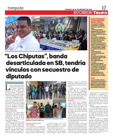vinculado con el secuestro del da establece que “Los Chiputas” tura desde hace varios meses. confirmó el diputado nacionalista, cipio de San Francisco de Ojuera,