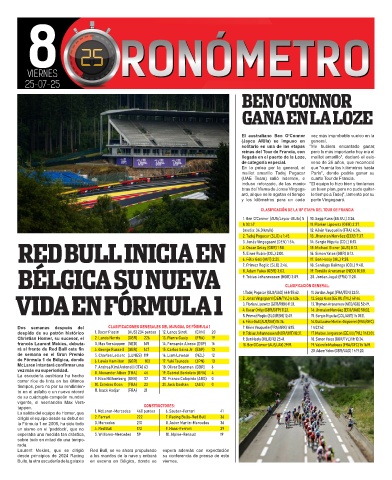 Christian Horner, su sucesor, el 2. Lando Norris (GBR) 226 13. Pierre Gasly (FRA) 19 9. Ben Healy (IRL/EFE) 25:41. 18. Simon Yates (GBR/TVL) 1 h 13:34.