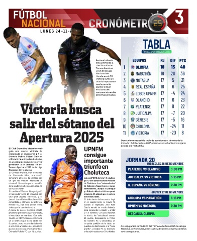 a solo tres unidades del penúltimo puestos de clasificación a la "fiesta Así se jugará la Jornada 20 del Torneo Apertura 2025 de la Liga
