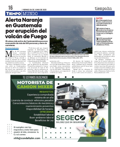 más activo en Centroamérica, (Conred) ha realizado la "evacua- gues desde varias comunidades podría duras unas 20 horas más volcán y une el sur del país con la