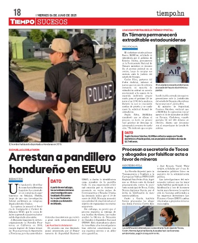 n hondureño identifica- Calle 18, una organización crimi- procesamiento contra la secre- tados habrían participado en la