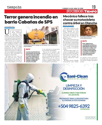 tico, generó llamas y una densa Los bomberos lograron apagar las llamas que no se extendieron a perdió el control del vehículo comunidad de San Benito, se