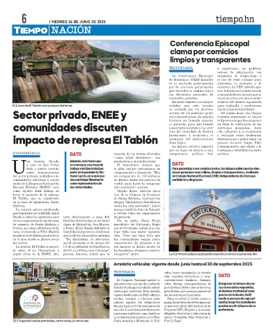 según cifras de la ENEE, afec- precisó. Además, señaló que la y negativo”, opinó. La Conferencia Episcopal pidió unas elecciones sin polarización.