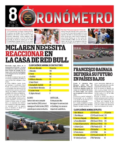 Premio de Canadá, Norris buscó un EL DATOEL DATO S ABÍA S Q UE… "decepcionado" por su rendimien- posible para posicionarme delante