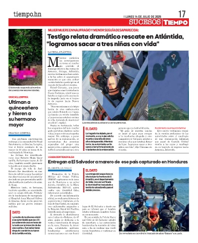 menor de 15 años en horas de la del bote intentaba salvar y otra tripulantes de la embarcación. el audio. Armenia, Atlántida.