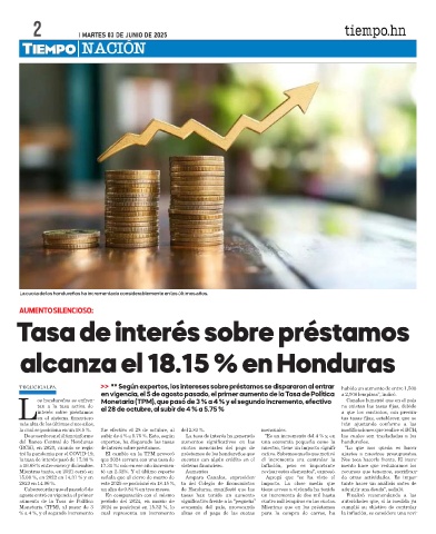 os hondureños se enfren- Monetaria (TPM), que pasó de 3 % a 4 % y el segundo incremento, efectivo Canales lamentó que en el país