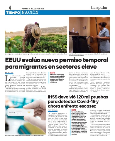 sectores, los empleadores han Además, se requerirá que laboral previa en el sector agríco- su gente», afirmó Trump.