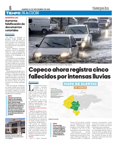 Abogados de Honduras (CAH) Alertas lluvias. yagua y Francisco Morazán. La zamientos, sobre todo en la zona