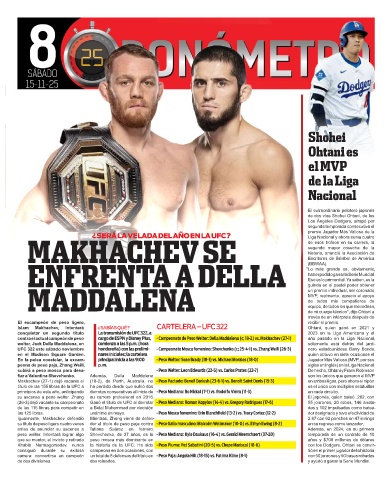 Khabib Nurmagomedov, nunca la historia de la UFC. Ha sido • Peso Pluma: Pat Sabatini (20-5) vs. Chepe Mariscal (18-6) con los Dodgers, Ohtani se convir-