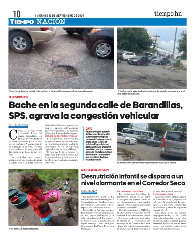 El bache está cruzando la 2 calle del barrio Barandillas, en la populosa avenida Junior. El tráfico por la avenida Junior es bastante pesado, a esto se suma el
