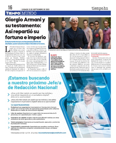ñador italiano para preser- y sus sobrinos Silvana y Andrea, con El testamento de Armani deja un imperio de 12,000 millones de euros.