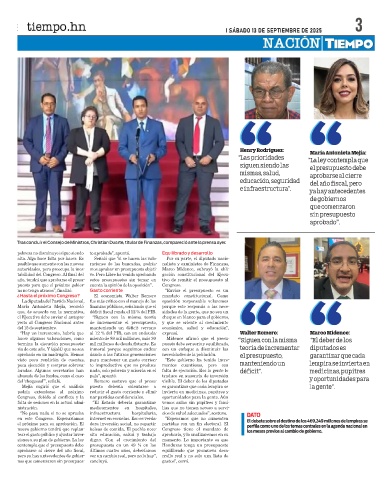 en este Congreso. Esperaríamos internet en escuelas. Eso es verda- “Esperamos que no aumenten El debate sobre el destino de los 469,249 millones de lempiras se