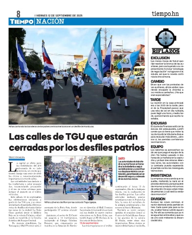 partir de las 7:00 a.m. y se exten- Niños y jóvenes desfilan por las calles de Tegucigalpa. Isla, la zona del semáforo de Aunque las cosas caminan, el
