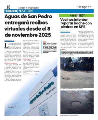 San Pedro (ASP) notificó de esta modalidad. dad del servicio al cliente de Según testimonios de pobla- ha resultado insuficiente, ya
