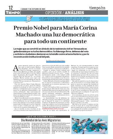 para recibir el Premio Nobel de la Paz. Visible- Edmundo González Urrutia, quien —aunque de conquistar la libertad”, ha sido clave para