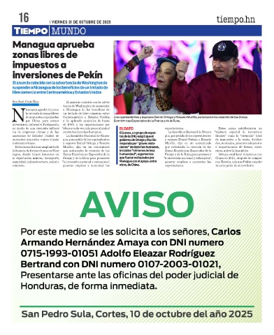 amenazas de Estados Unidos de La Asamblea Nacional de Nicara- tos de la ONU exigió que el gua, por pedido de los copresidentes fiscales" como la "exención" total