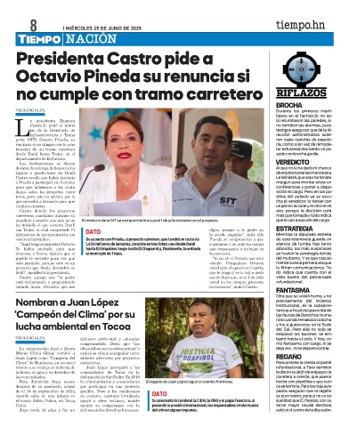 “Aquí tengo al ministro Octavio. 1,450 millones de lempiras, consiste en tres lotes: uno desde Danlí el próximo 1 de julio las máqui- silencio de tumba tras tanto