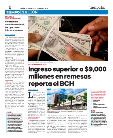 las denuncias recurrentes 237,000 millones de lempiras. Las remesas cuadruplican los destinados a la importación de respaldo, expertos señalan