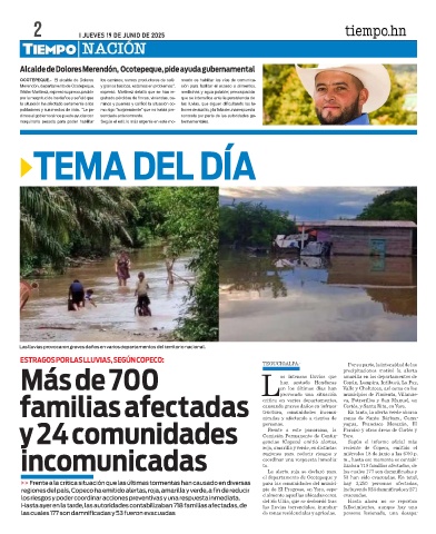 >> Frente a la crítica situación que las últimas tormentas han causado en diversas para las comunidades del munici- hay 3,250 personas afectadas,