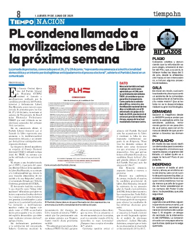 por el CNE (…) por parte del conse- Comunicado del Partido Liberal. ataques de Libre?”. INDEFENSO