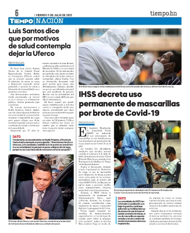 palmente a motivos de salud y determinación. Además, insistió El IHSS insta a seguir otras medidas preventivas como el lavado de manos y distanciamiento social.
