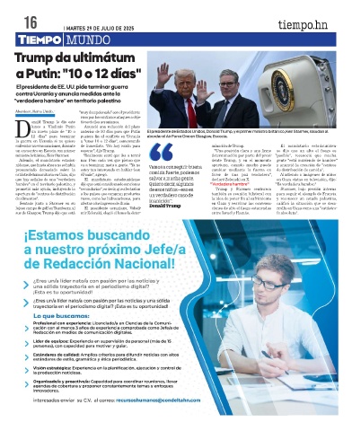 sur de Glasgow, Trump dijo que está mir Zelenski, elogió el lunes la deter- entre Israel y Hamás. fe absoluta".