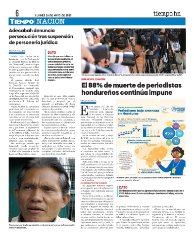 que se están violando sus dere- derechos, lo que deja mal 101 personas ligadas a los medios de comunicación han sido asesinadas desde 2001, según el Conadeh.