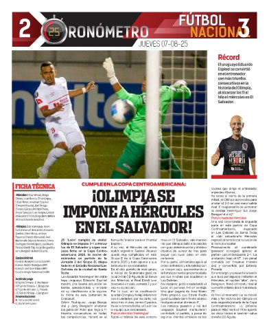 Rodríguez (Kevin López), José Mario Olimpia se impuso 3-1 a Hércu- Espinel. nar que Olimpia saltó a la cancha al menos empatar.