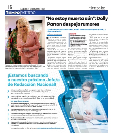 Parton agarró el toro por los cuernos Parton explicó que durante la que estoy bien (...) No estoy lista