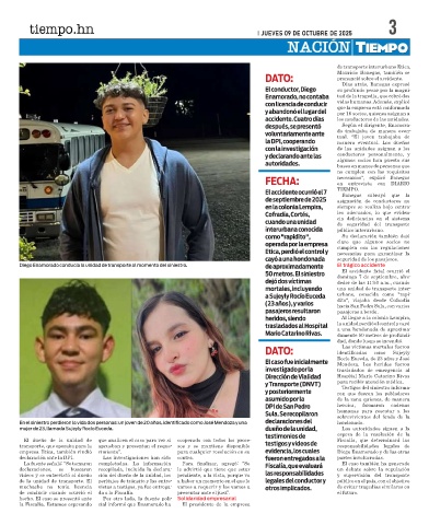Diego Enamorado conducía la unidad de transporte al momento del siniestro. de aproximadamente El trágico accidente