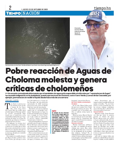 CHOLOMA, CORTÉS. de 9,702 habitantes y Lomas de lempiras”, lamentó Ana Torres. Otros denunciaron que el