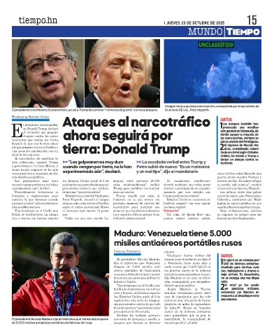 “Probablemente volveremos al de lanchas “narcoterroristas”. deos con misiles. mandato que esos cárteles son Los críticos, entre ellos gobier-