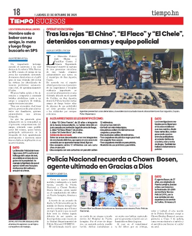 al presunto agresor, su amigo y Policía Número 9 (UDEP-9). ros, un segundo policía resultó Al caer en el cumplimien- al sacrificio por honrar el unifor-