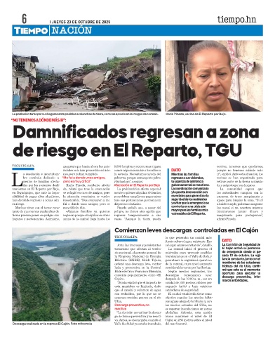 Ldas por los recientes desli- Karla Pineda, residente afecta- Afectación en El Reparto por Bajo gubernamental se mantiene. da y así proteger sus hogares.