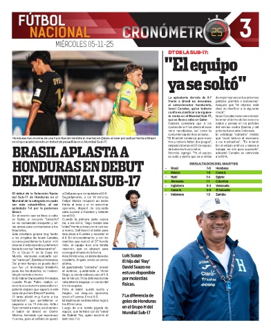 HONDURAS EN DEBUT • Brasil RESULTADOS DEL MARTES