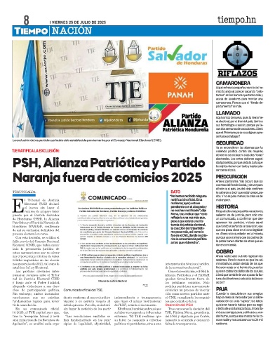 PSH, Alianza Patriótica y Partido electorales. Los entes pidieron seguri-