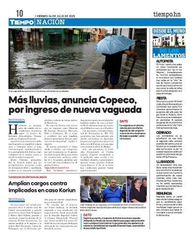 cialmente en el oriente, centro y en el sur del país. En la zona norte, gencias (Copeco) recomienda a quedó en promesas del ge-