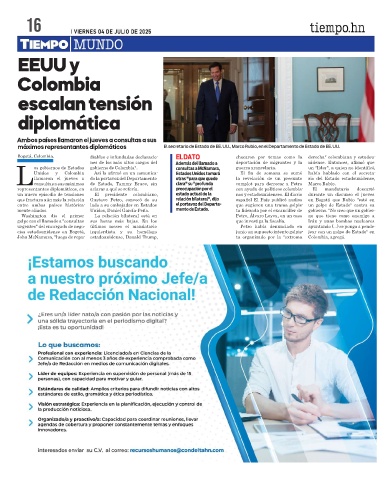 Unidos y Colombia Así lo afirmó en un comunica- Estados Unidos tomará El fin de semana se sumó había hablado con el secreta-