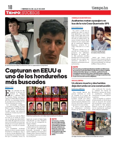 captura de Olvin Mauricio Martí- Lempira, cuando una estruc- Ante la tragedia se confirmó