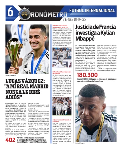LUCAS VÁZQUEZ: 2025 la cifra de 1.185 millones Euros (209.000 dólares) es el monto de los cheques