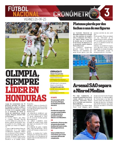 puntos, seguido de Marathón, que jornadas sin anotar un gol, hasta Septiembre, Platense abre