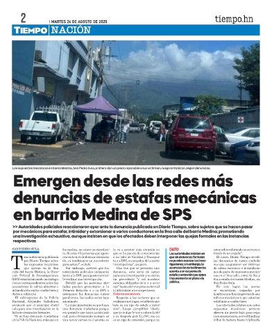 calle del barrio Medina, la Direc- autoridades policiales indagarán denuncia, esta sirve de apoyo apunta a un esquema de nes de parte de supuestos mecáni-