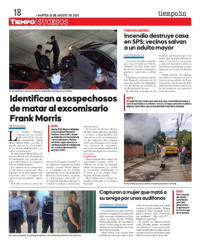 Ldel excomisario Frank nuevos elementos. Recien- te. En respuesta, otro criminal