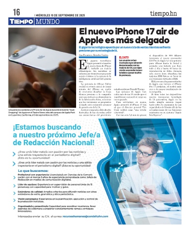 en Cupertino, California, el 9 de septiembre de 2025. cas arancelarias del presidente Con tan solo 5,6 mm de grosor, Intelligence".